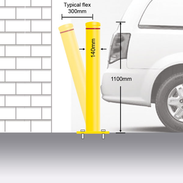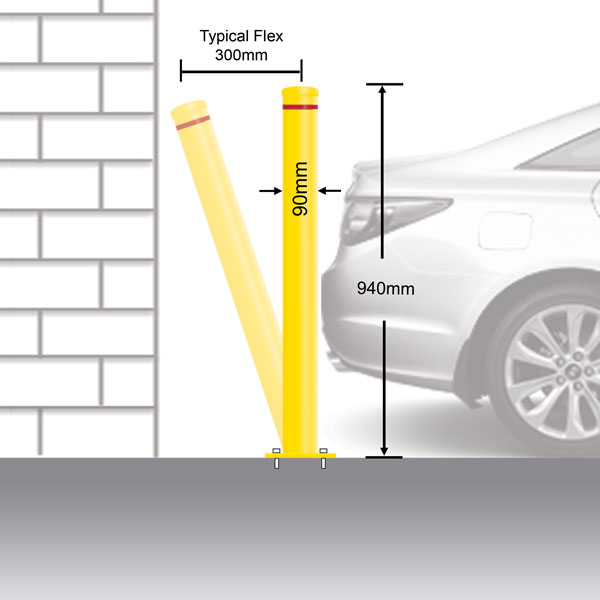 - Bollard absorbs the force of the collision and minimises damage to the bollard
