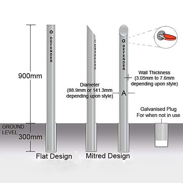 - This bollard has the option of a medium security or high security lock