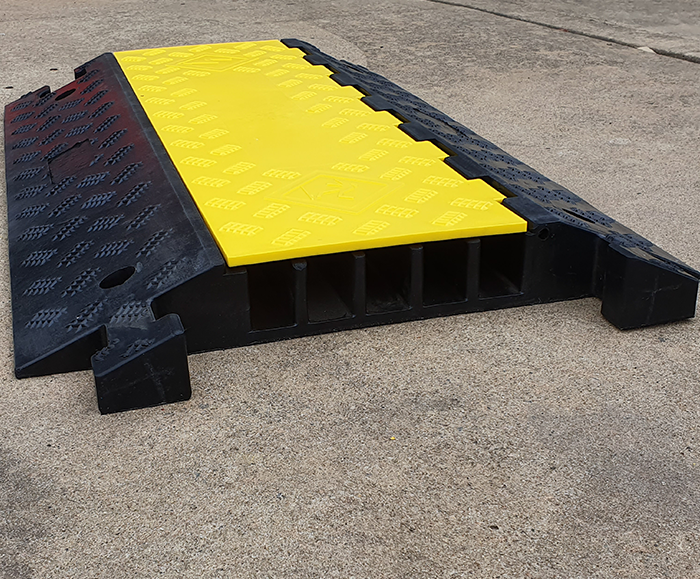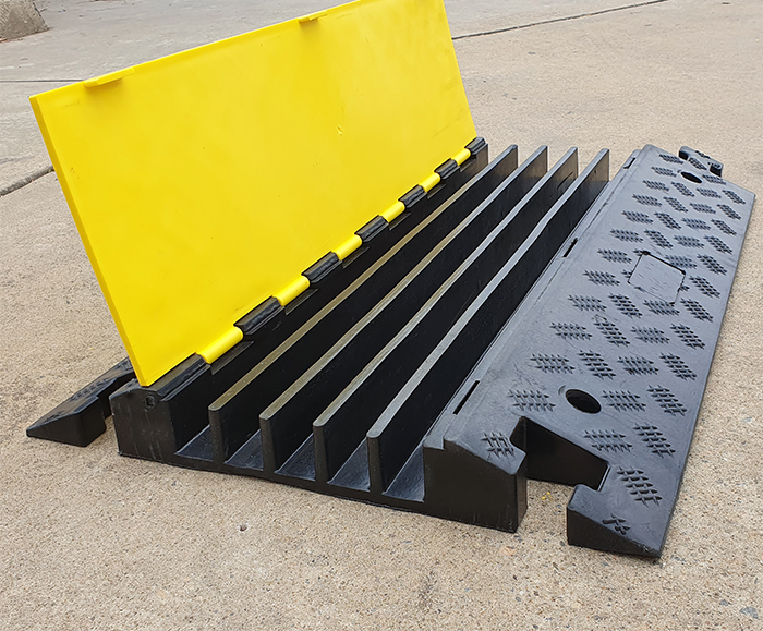 Our 5 channel cable protector are designed to save your valuable cables and hoses from vehicle damage, while also providing safe passage for vehicles across potentially hazardous cables. Our cable protectors are non-conductive, plastic and polyurethane construction making them suitable for high volume pedestrian and low to medium volume, light to medium weight vehicle applications. This cable cover has a modular, interlocking design which allows you to construct cable protection systems to suit your needs.