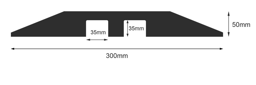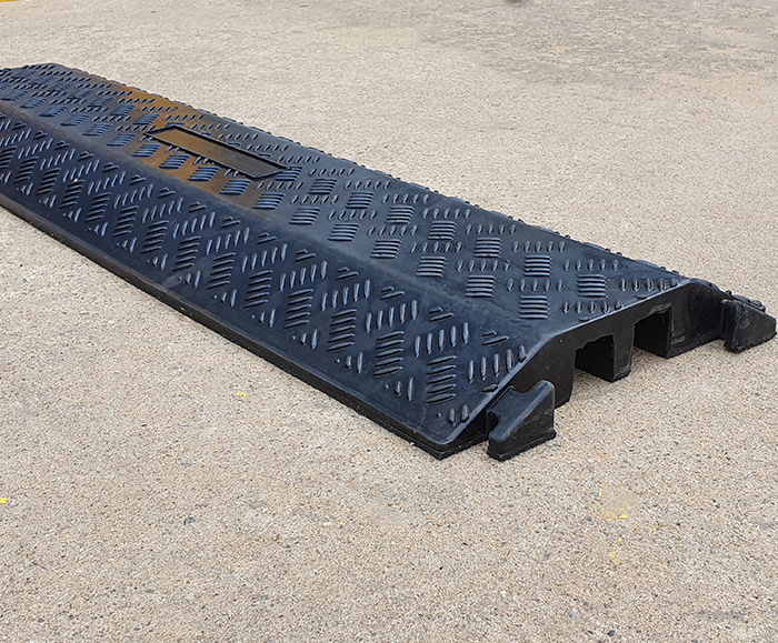 A robust drop-over style cable protector, manufactured from non-conductive rubber with anti-slip tread. The protector is primarily designed for pedestrian use, but will cater for occasional light vehicle traffic.