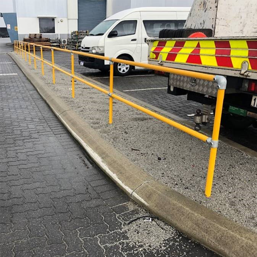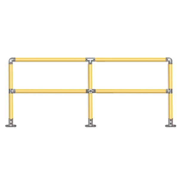 - Bolt-down posts with yellow powdercoated steel uprights and cross rails