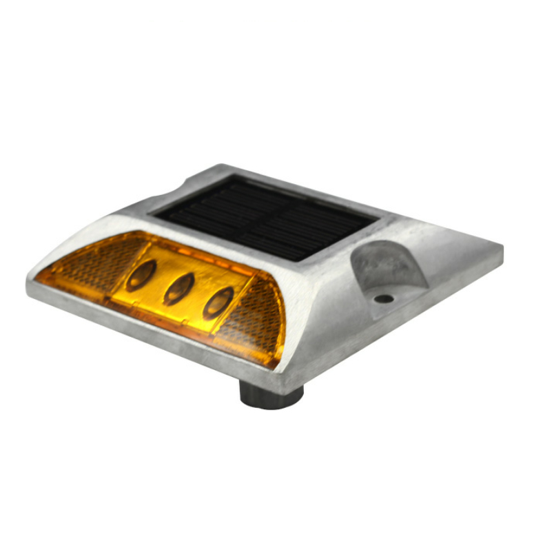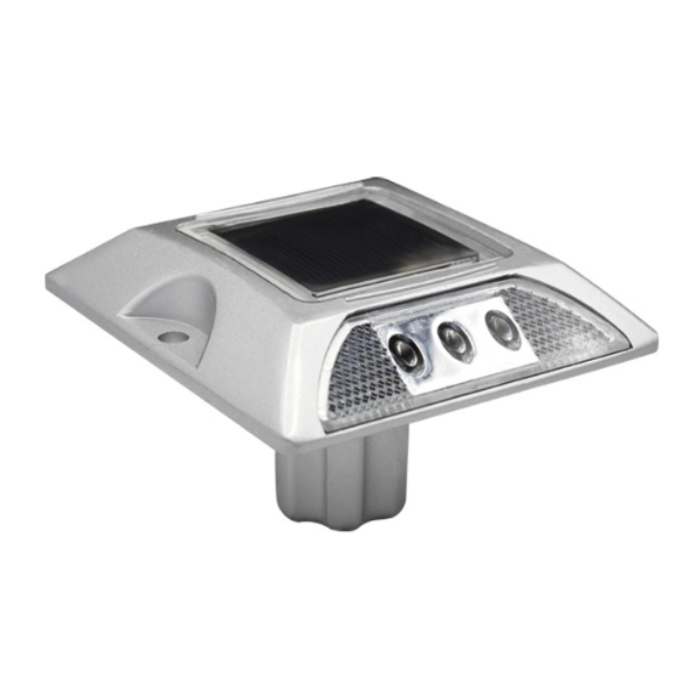 Solar Road Markers or lane markers are a low-cost, self-contained, rechargeable, LED illuminated marker. Visible up to 800 metres they are used to reduce speed or signal driver attention to common features, hazards and dangerous bends on our roads. Commonly used on sharp corners, pedestrian refuges, traffic islands and dividing lines. The aluminium casings are rated to 20 tons, single or dual sided in static or flashing modes providing clear and visible traffic guidance in all weather conditions. Multiple colour options are available. The inground spigot ensures the road markers remain located under constant traffic movements. These units require no maintenance and generate no ongoing operational costs.